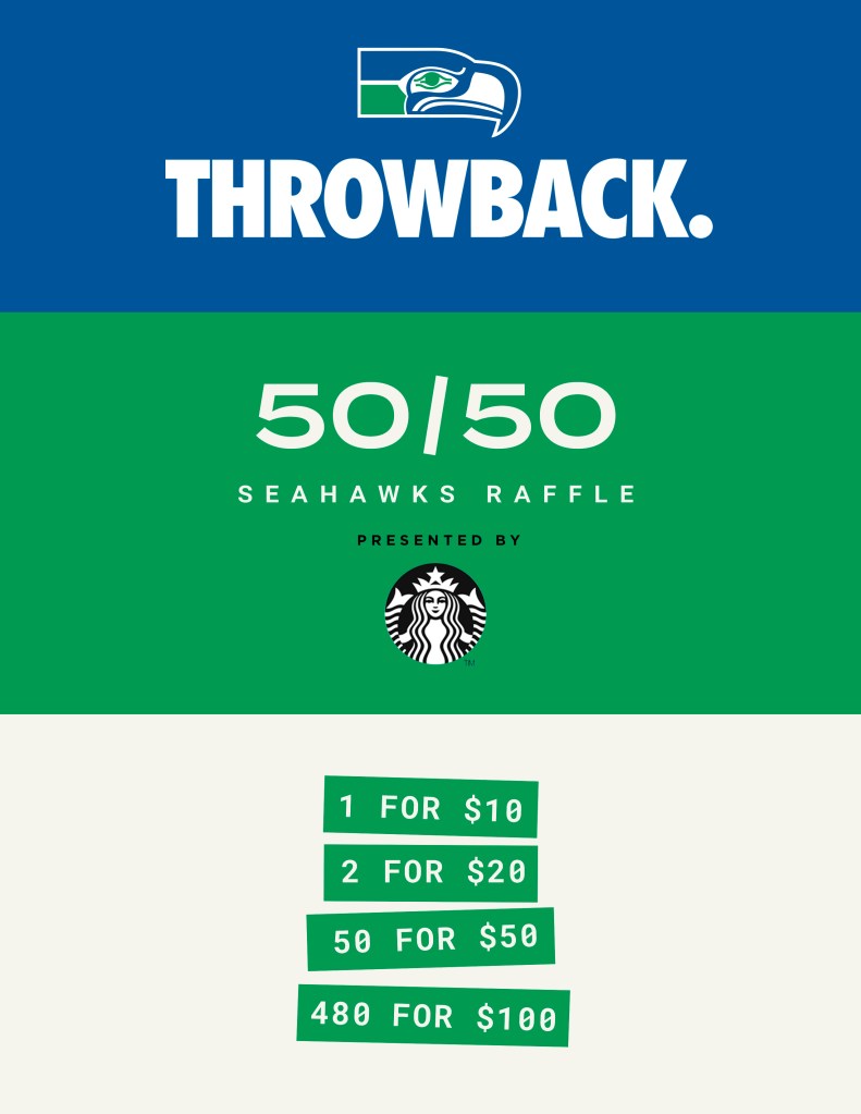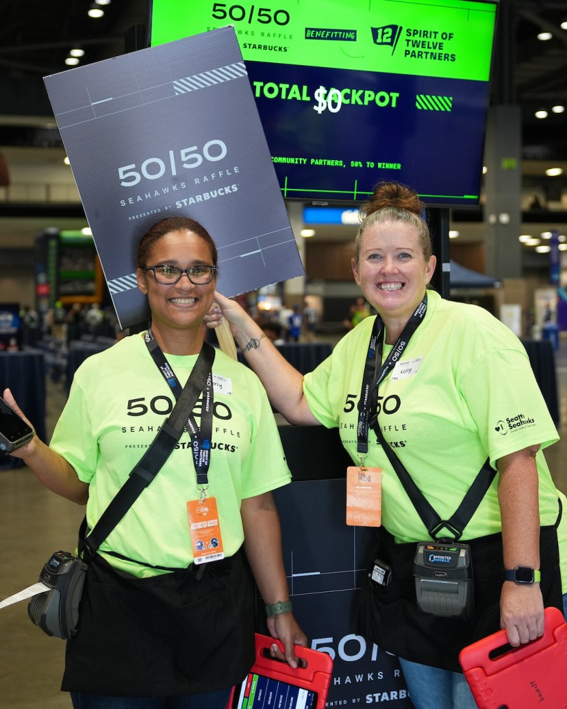 The Seahawks’ 50/50 Raffle, newly presented by Starbucks, returned for year 2 at Lumen Field. Fans could purchase raffle tickets at kiosks throughout the stadium: entering for a chance to win half the total jackpot by the end of the 3rd quarter every home game. The other half benefitted our Spirit of 12 partners: nonprofits that align with the Seahawks’ community values. And at the end of the season, the total raised by the 50/50 Raffle was also matched by the Paul G. Allen Foundation.