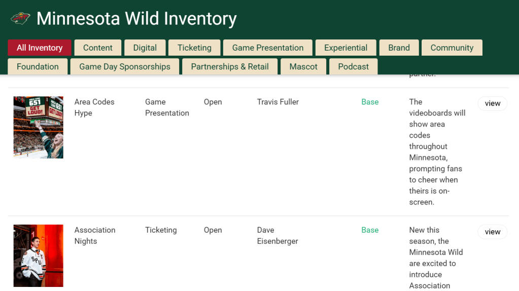 The Minnesota Wild uses Knack – an internal Sales platform – to track the inventory of our marketing-forward Partnership assets. Knack replaces the need for a traditional project brief: allowing stakeholders to easily communicate the promotional plan that goes with each feature.