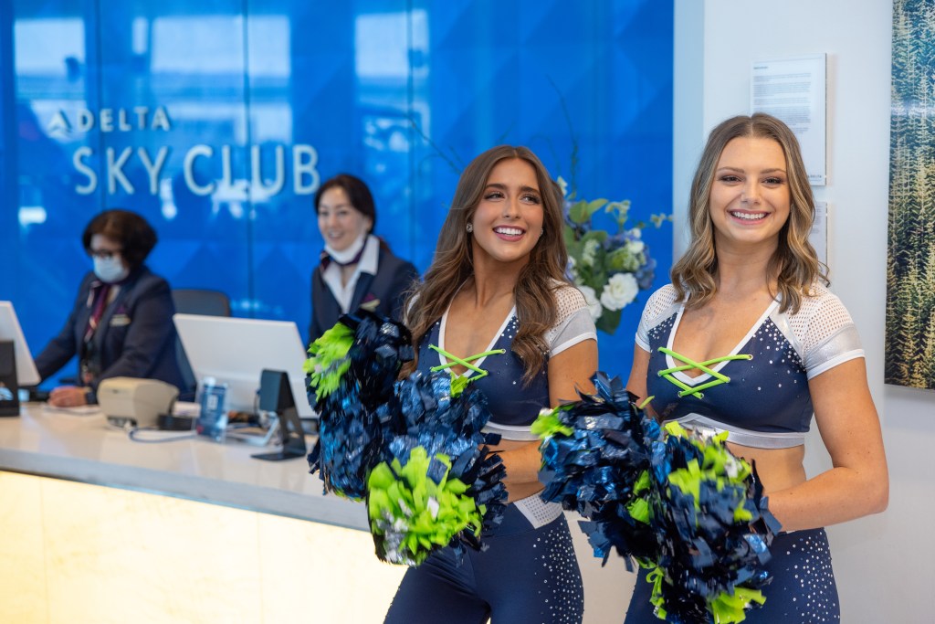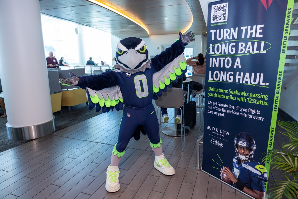 To help promote the campaign, the Seahawks and Delta partnered with Coca-Cola to offer a Beverage Poncho as a gate giveaway item. In addition, the Seahawks Dancers and Blitz paid a special visit to the SeaTac airport ahead of our away game matchup versus Detroit. Seahawks fans at the Delta gate received Seahawks swag packs and had the opportunity to engage with the talent.