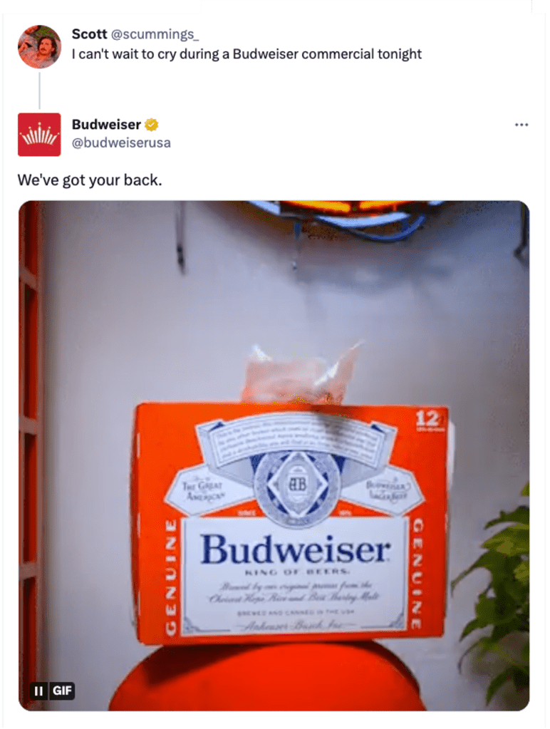 After sitting out the Super Bowl commercials in 2020, Budweiser made its return to the big screen for Super Bowl LVI with its, “Down Never Means Out” :60 spot.