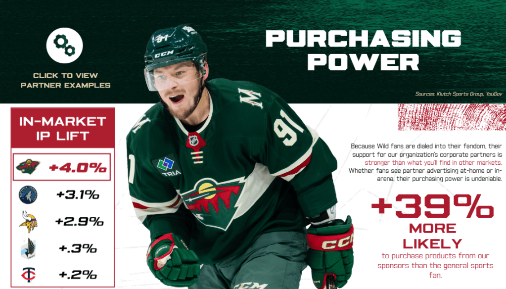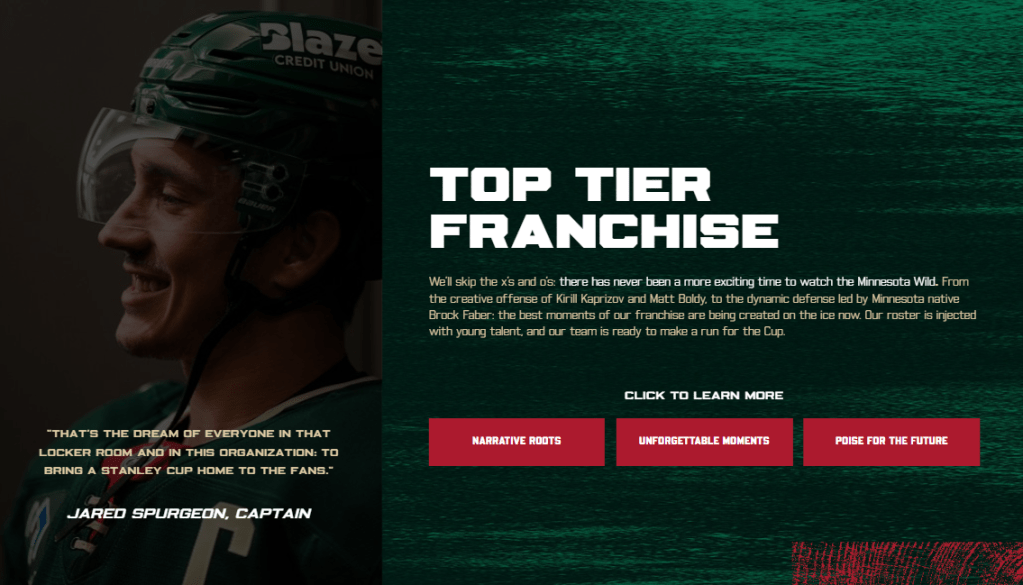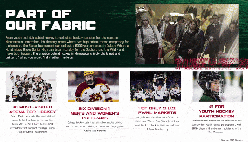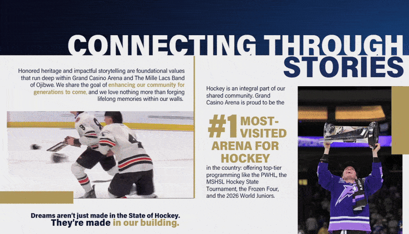 The Minnesota Wild and Grand Casino Arena utilize DIGIDECK as their primary platform for client proposals & beyond. While our “Master Library” contains custom slides for the individual assets that make up each pitch, one of DIGIDECK’s most important roles is to help tell the story of our brands and provide fan/business data to our clients: ultimately showcasing the benefit of working with us.