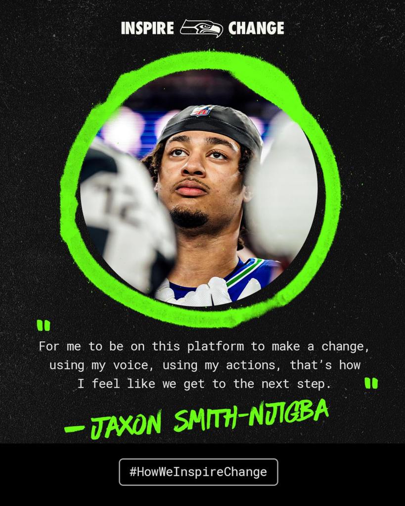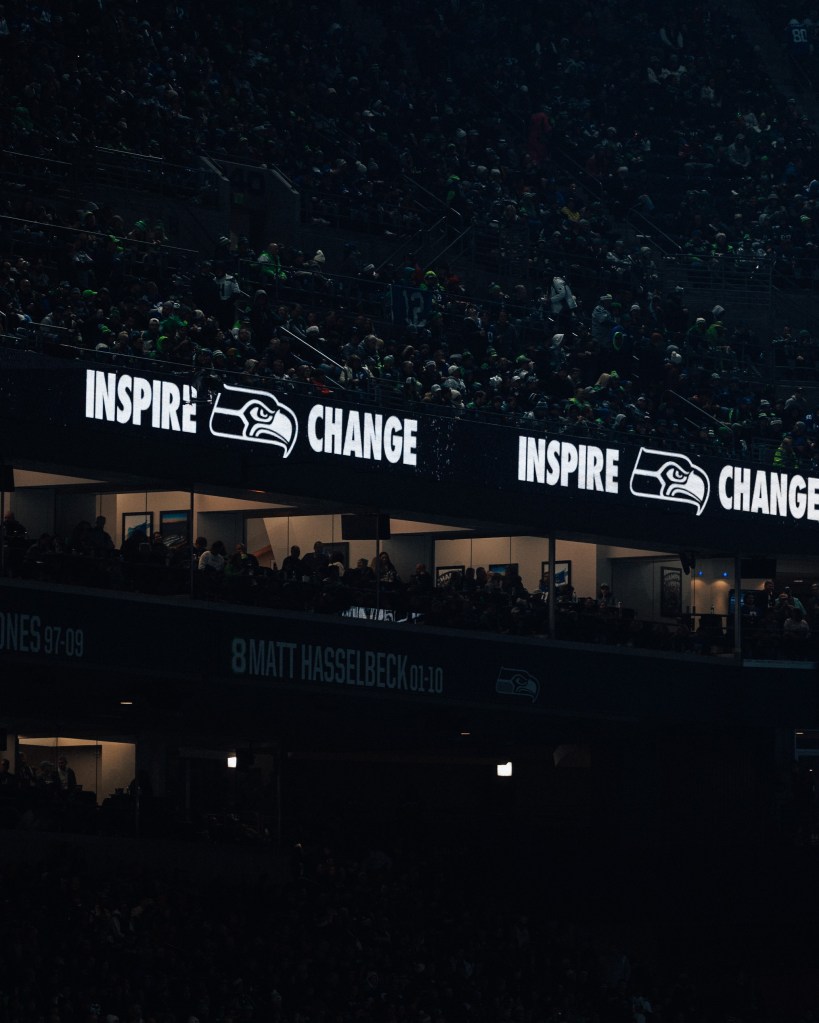 Throughout the NFL, the Inspire Change game is meant to create awareness around social justice. And for the Seahawks specifically, our goal was to showcase “How We Inspire Change.” To do so, we created a refreshed Look & Feel – meant to enhance both in-game features as well as our digital assets for storytelling on social. Inspire Change is a month-long initiative, meaning we were able to cover a number of community activations within that cohesive design lens.
