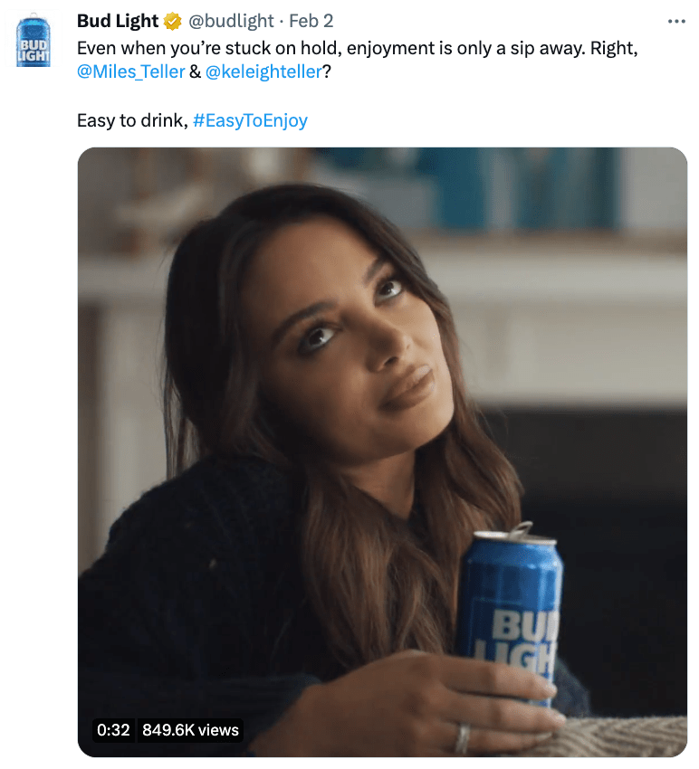 To launch their new messaging, “Easy to Drink, Easy to Enjoy,” Bud Light recruited talent Miles and Keleigh Teller for their Super Bowl LVII spot.