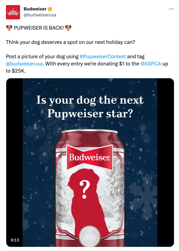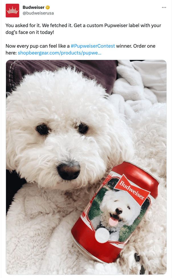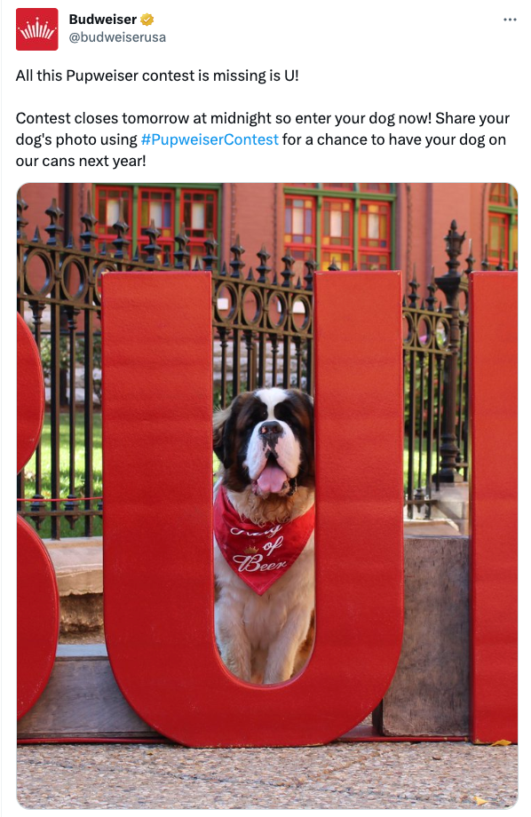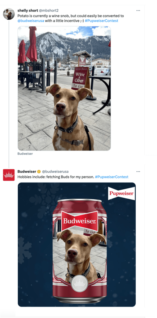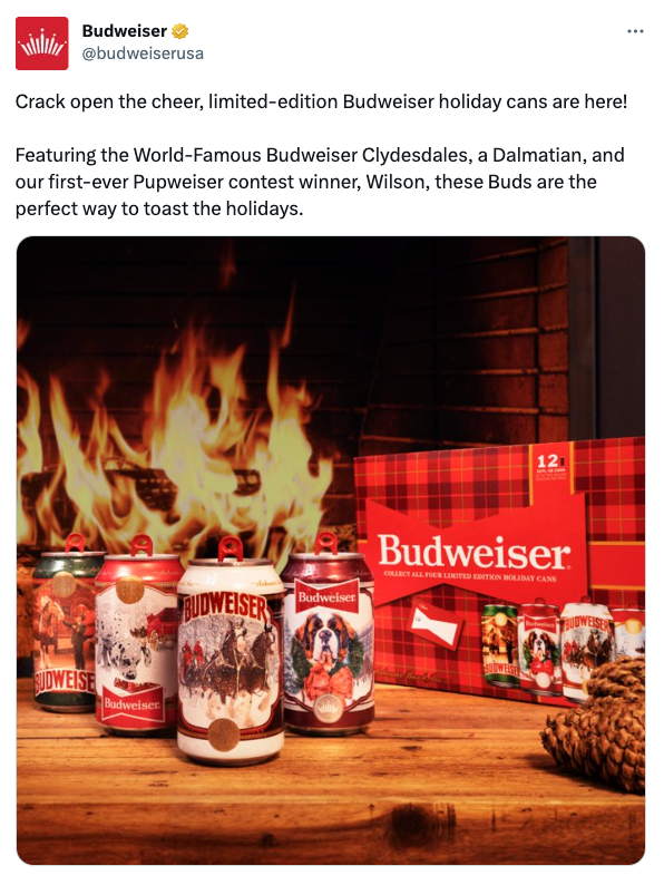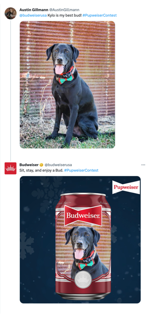 To recreate the magic of Wilson the Saint Bernard being featured on the 2021 Holiday Cans, Budweiser ran yet another Pupweiser Contest in 2022. Four-legged entrants were encouraged to pose for a chance to win their own close-up on the brand’s next packaging release.