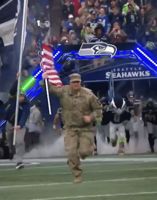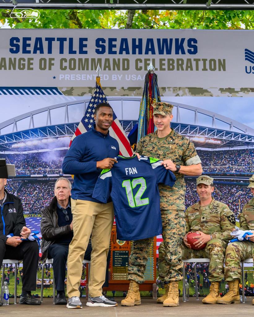 Another arm of the Seahawks’ Salute to Service campaign included our longstanding partnership with USAA, who helped us bring unique, impactful integrations to life. “Change of Command” is one such event, where we celebrate & recognize a different military service branch each year: rotating through the Army, Airforce, Navy, Coast Guard, and Marines in a passing of the baton ceremony. In our 11th year of activating, the Marines (2022) handed off the honor to the Army (2023).