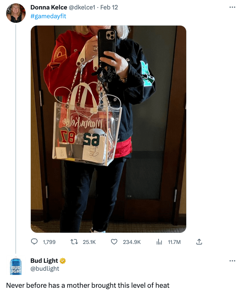 As a part of the Super Bowl LVII campaign, Bud Light always knew they wanted to help whichever team hoisted the Lombardi celebrate by, “Bringing Home The Bud Light.” Essentially, they would provide the beers for the winning city. But when the two teams competing came down to the Eagles and the Chiefs, the internet lovingly named it, “The Kelce Bowl,” and one more storyline seemed to emerge: Mom.